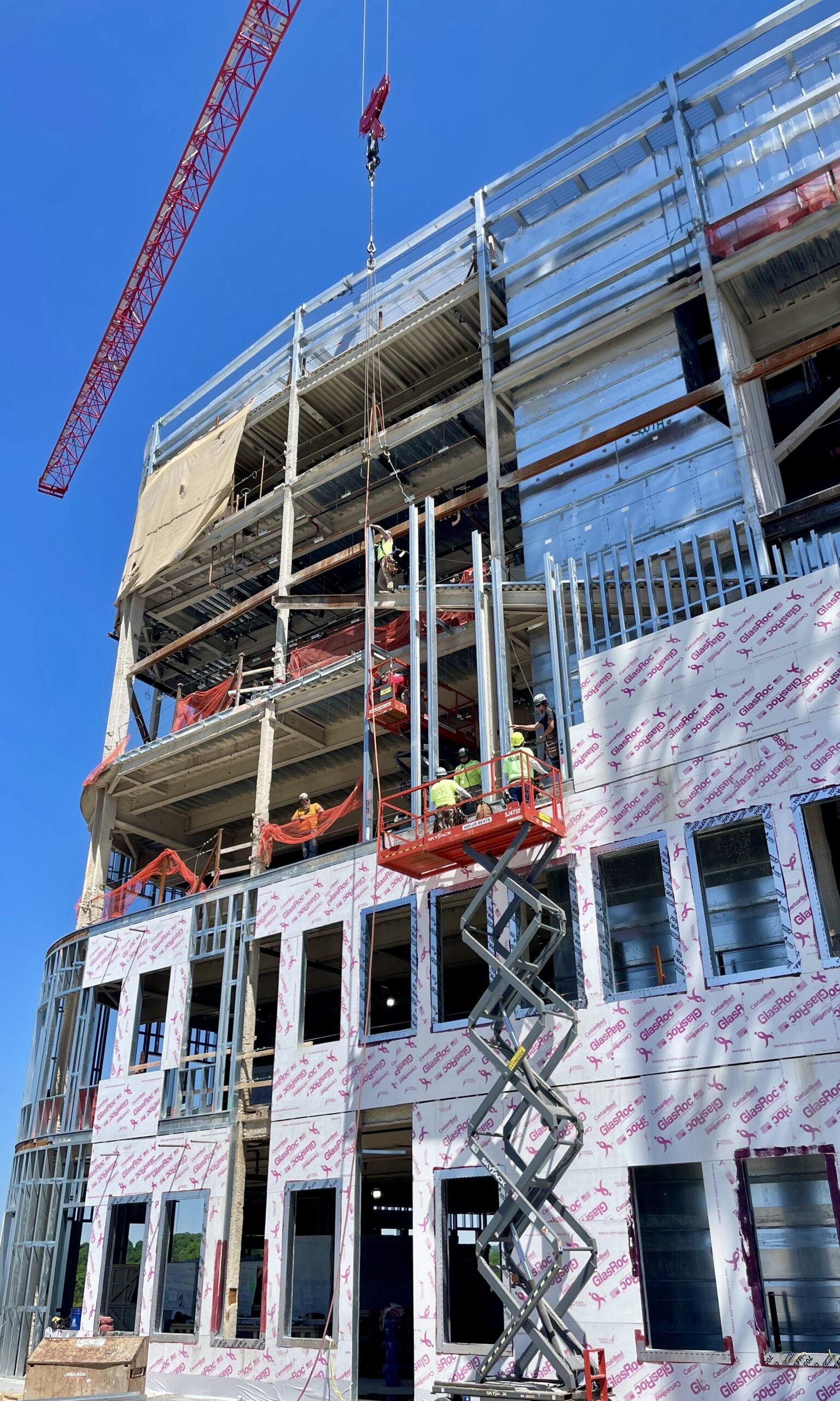 The project features 133 tons of cold-formed steel (CFS) framing, installed by specialty contractor and Steel Framing Industry Association (SFIA) member T.J. McCartney, Inc. T.J. McCartney is the 2025 SFIA Industry Project and Product Awards winner for the project, winning in the High Rise category. Jesse Vaillancourt of T.J. McCartney submitted the SFIA Awards entry.