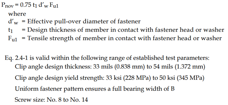 However, a University of North Texas study on thin screw attached clips identified two additional strength limit states. Both are addressed in AISI D114: