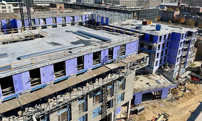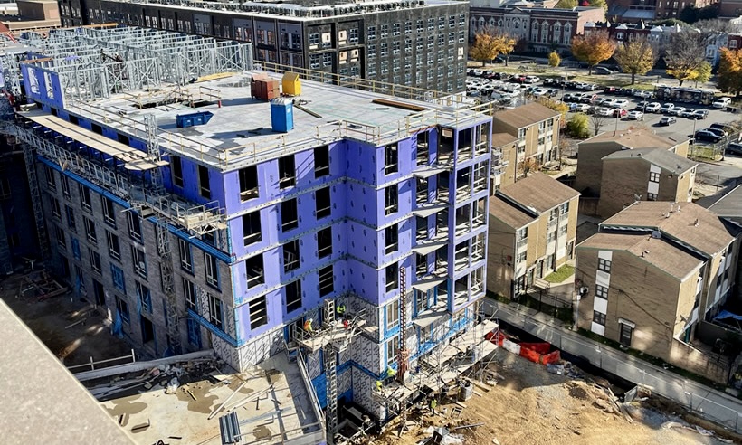 Cold-formed steel (CFS) framing ascends against the Washington, D.C., skyline — evidence of the material’s strength and efficiency in mid-rise design.