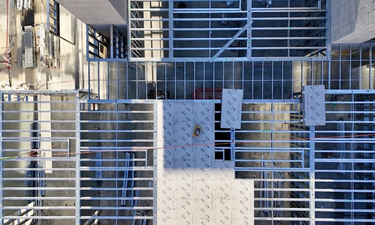 The project sits on a downtown infill site with limited staging space. The team needed a framing system that supported on-delivery and rapid assembly. The choice? Prefabricated CFS panels. Panelization enabled clean sequencing and minimized site congestion.