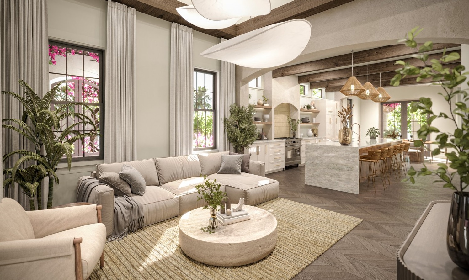 The West Bay residences include solid hardwood floors, chef’s kitchen with quartz countertops, custom-wood cabinetry and custom mahogany hardwood exterior doors. Image Credit: Wolf Partners