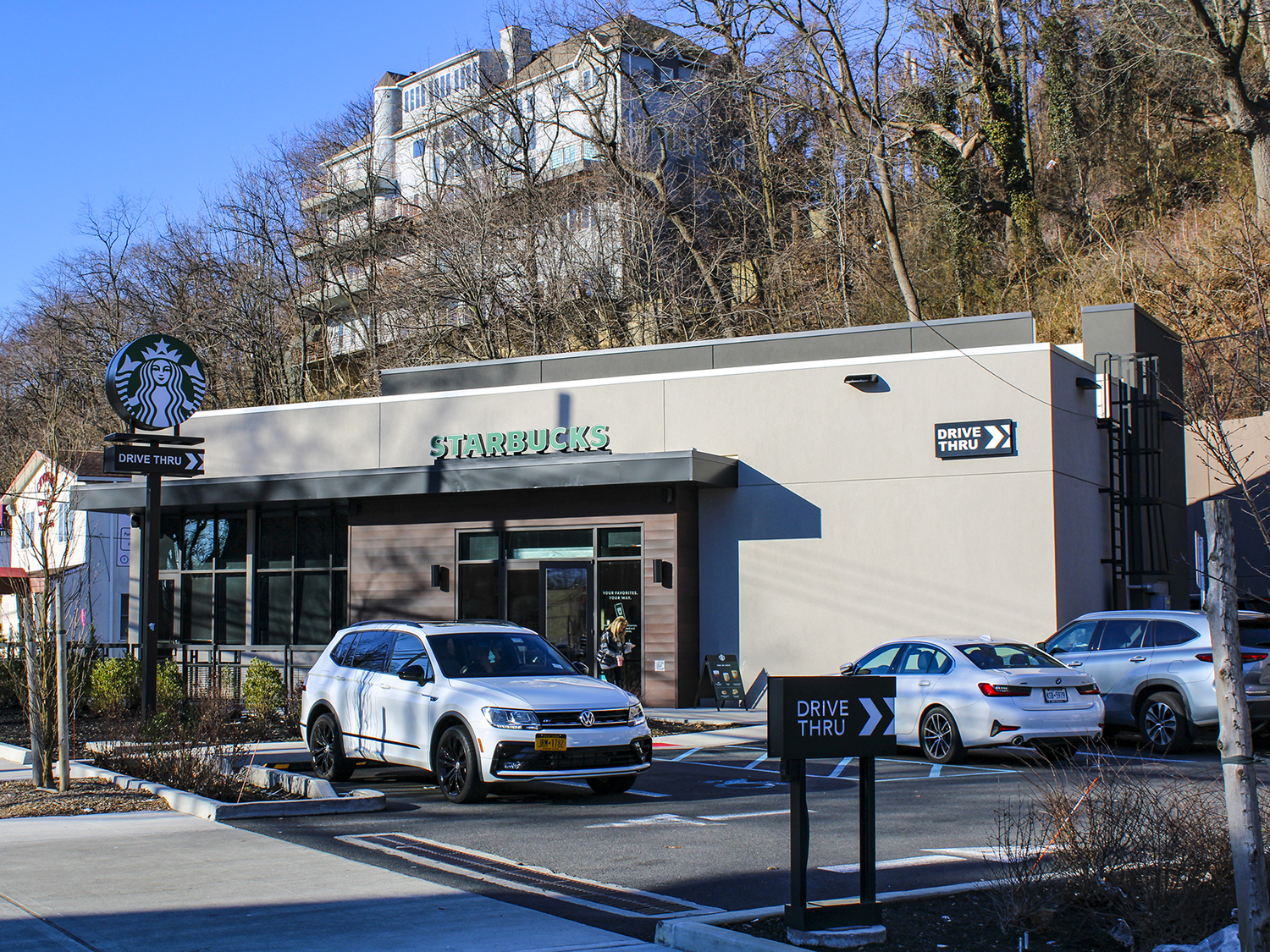 The Lighthouse Hill neighborhood — a chain of hills that radiate from the northeast corner of Staten Island, New York — is the site of a new Starbucks coffeehouse. The free-standing building located at 1717 Richmond Road offers a drive-through window with convenient ingress and egress. The configuration is adaptable to a variety of alternative uses.