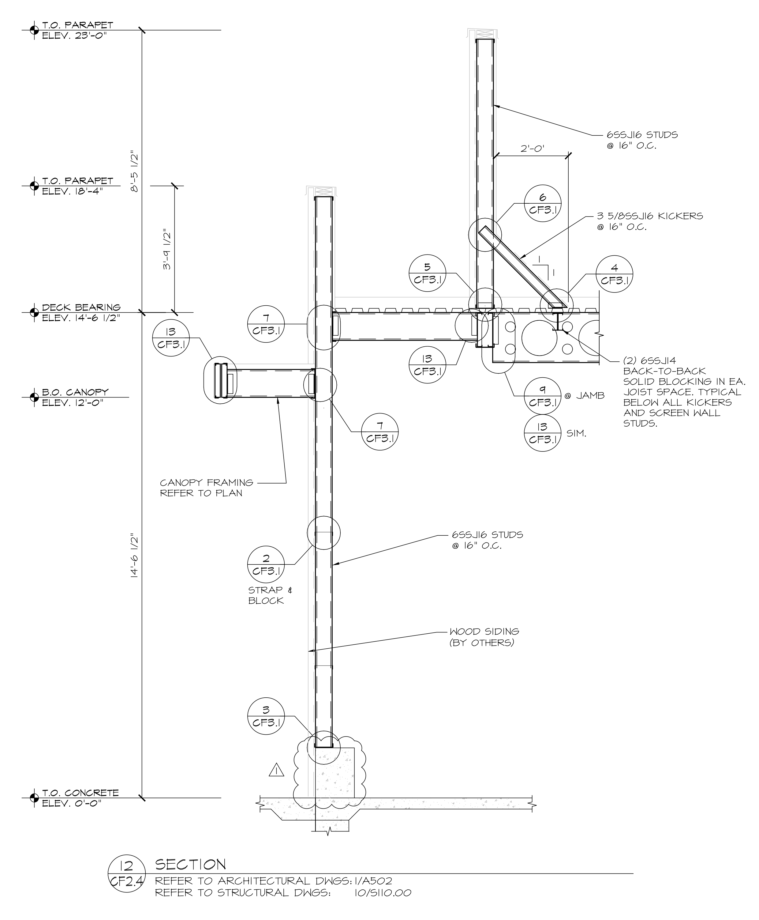 - Sections of note at canopy; 3/CF2.1, 5,7/CF2.2