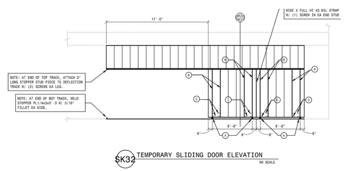 A temporary opening was required to also function as a sliding door. Salas O’Brien designed a CFS temporary exterior wall that also acted as a sliding door.