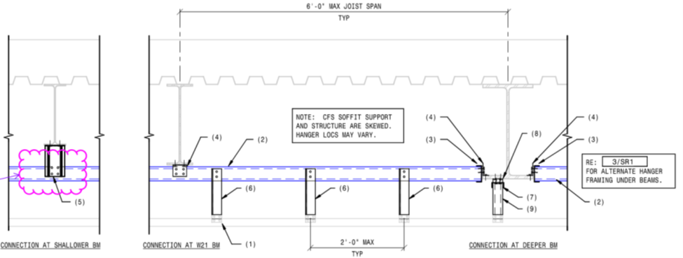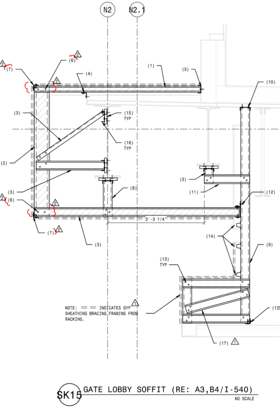 The remaining CFS design and detailing of exterior and interior portions of the expansion are difficult to envelope into single topics for discussion. But there were large amounts of miscellaneous locations where CFS framing was required to finalize incomplete design to configurations that did not work as detailed by the design team.