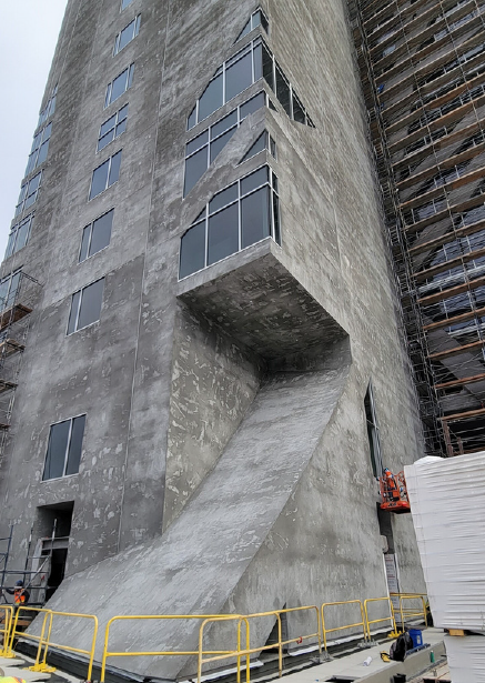 The stair system at the (W)rapper required proper load resistance, fire rating and weather proofing. Photo courtesy of PCI.