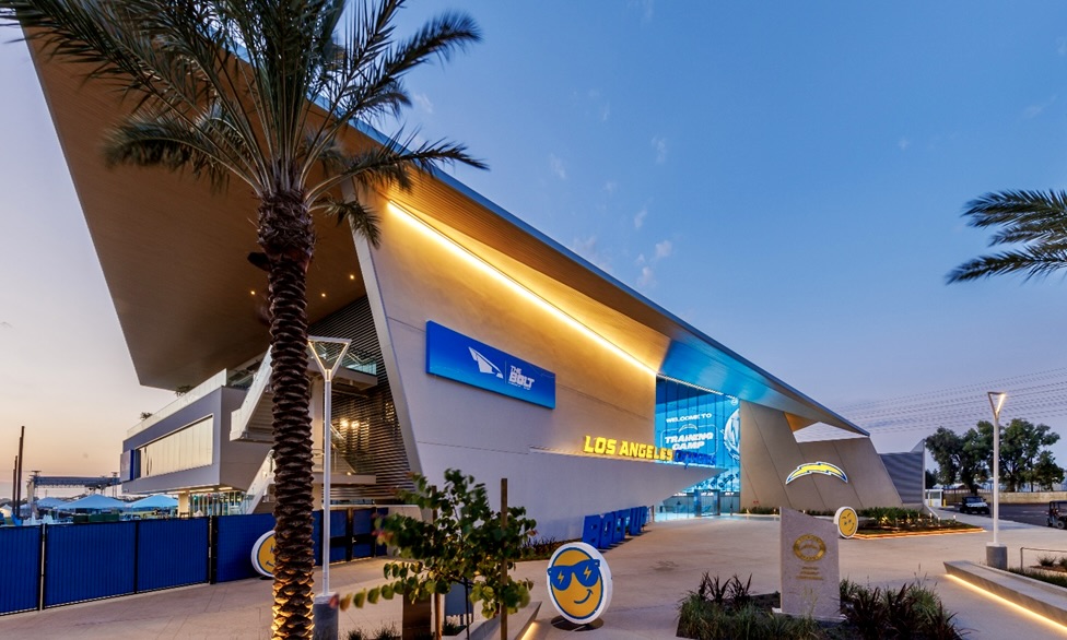 Featured image: The cold-formed steel (CFS) framed front entrance of The Bolt in El Segundo, California. Profile courtesy of CFSEI. Images courtesy of LA Chargers.