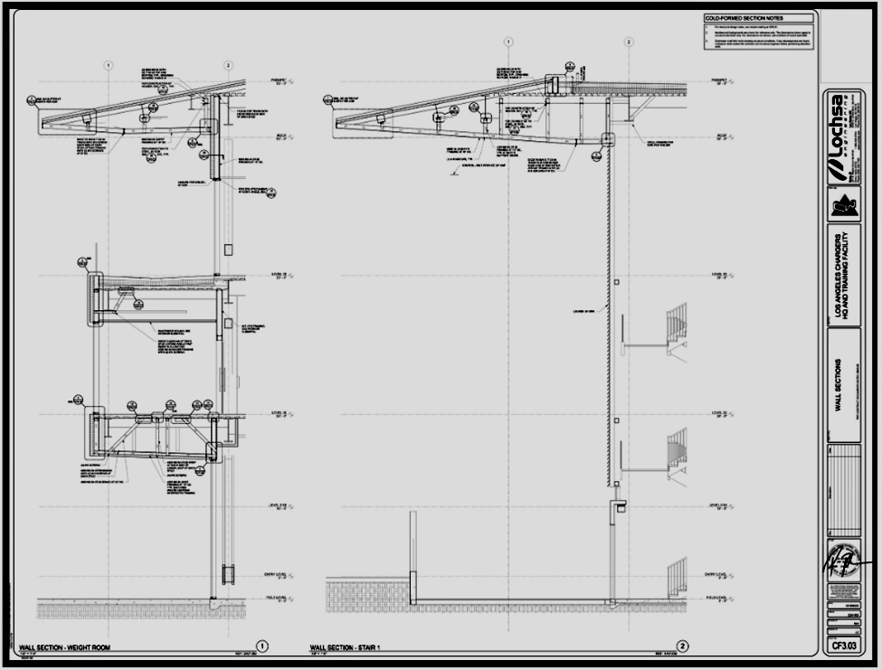 Project stakeholders collaborated closely to ensure the framing remained hidden while still providing full support. BIM and structural engineering software helped align the CFS framing grid with the architectural elevations. The detailing exceeded typical CFS shop drawings and required multiple elevations and sections to illustrate the layout. The team developed custom details beyond the standard CFS package. The CFS framing system also met all current code design loads and deflection and building drift criteria, which was critical since the NFL team training facility lies in a high seismic zone.