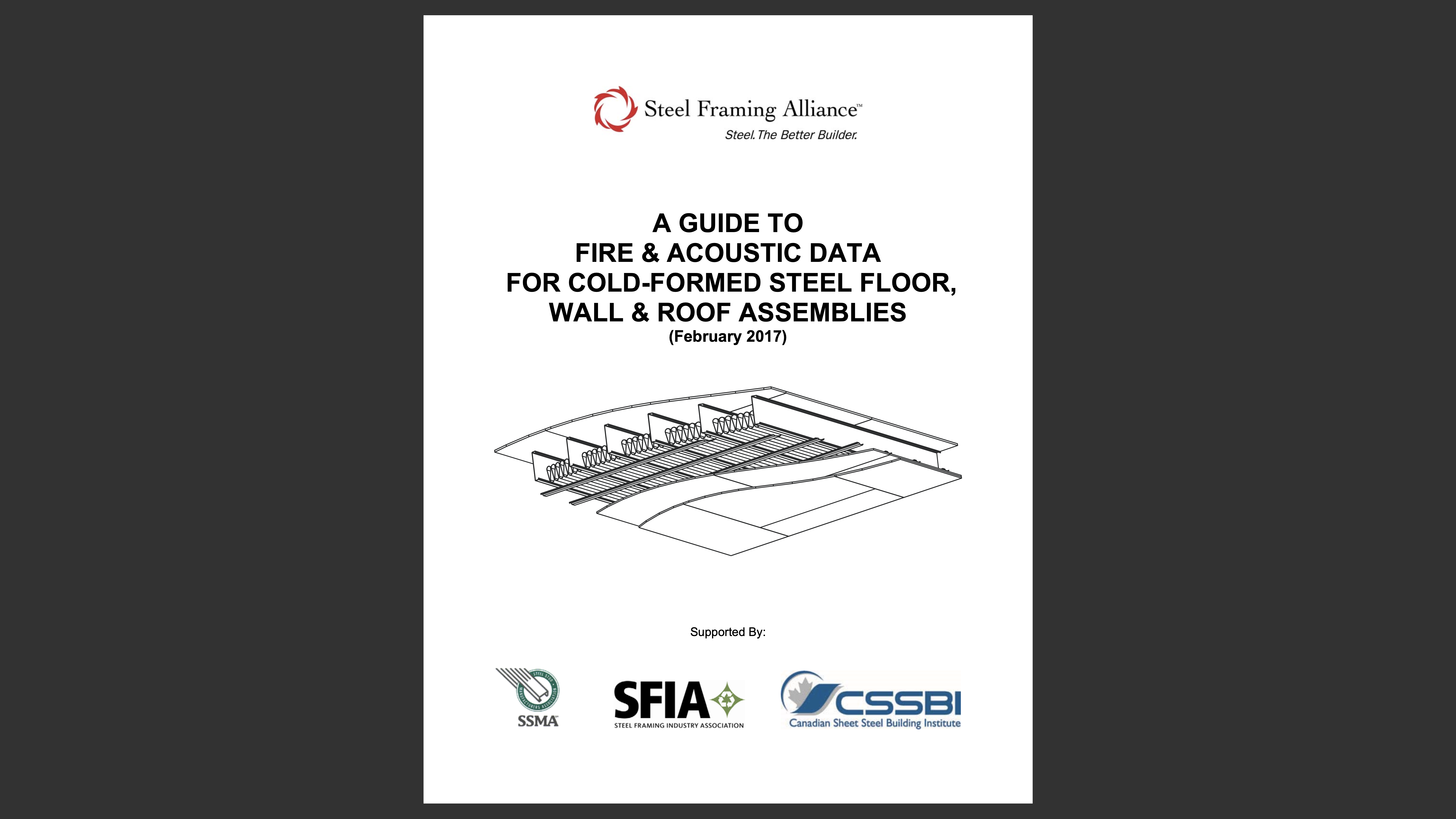 “A Guide to Fire and Acoustic Data for Cold-Formed Steel Floor, Wall and Roof Assemblies” (2017 version) cover 2
