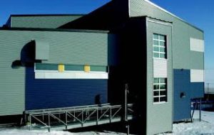 After hours both the library and gymnasium can be accessed directly from the entrance vestibule without entering the rest of the building. The foundation is built on141mm (5-1/2”) diameter rock socketed piles elevating the school over a sloped site and allowing the community area snow melt to drain below. Access is provided by a series of galvanized steel stairs and ramps.