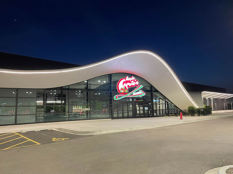 McClure developed the CFSEI award-winning, cold-formed steel (CFS) prefabricated panel designs for the curvy entryway of Angelo Caputo’s market in Norridge, Illinois.